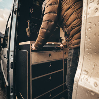 This thing is a full-on race-weekend hub: kitted-out roof rack, full Ply Guys fit-out inside with all the good birch ply, slide-out bike storage in the back for all our gear, and a comfy, functional, and stylish living space to chill and prep between runs. Basically, the dream setup for a trip like this. The Ply Guys have backed me all the way this season, and this Crafter is just another example of the support they give.
