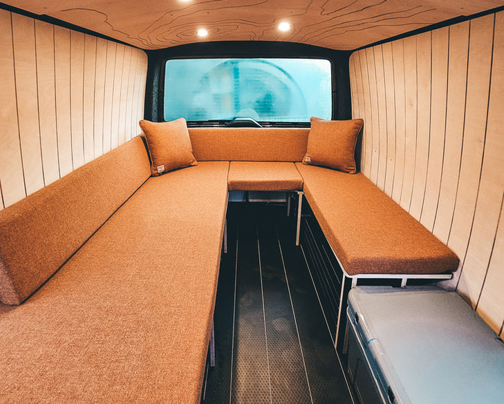 We recommend laying 2mm Dodo Mat sound deadening wherever you prefer, followed by 7mm Dodo Mat Pro Liner adhesive insulation on top. You don’t need battens, as we bolt your floor down in a Transporter using the existing D-rings.